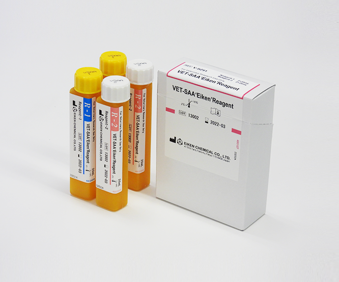 VET-SAA ‘Eiken’ is a turbidimetric immunoassay reagent for measurement of serum amyloid A (SAA) in animal serum and plasma.